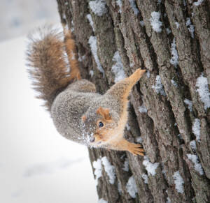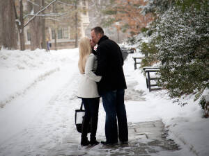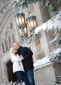 Not everybody is willing to brave a cold and snowy winter day for engagement photos Ann Arbor MI, but Katie & John were up for the challenge! Â Their warm and genuine smiles kept the cold at bay and we got some gorgeous shots! Â Even a resident squirrel had to sneak a peek at this beautiful couple. Â One of our all time favorite photos is the one of Katie and John in a full blown laugh with Katie’s hair blowing in the wind.
