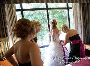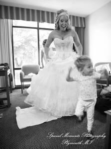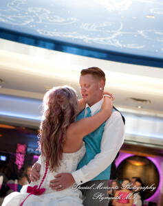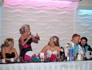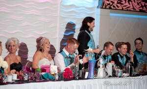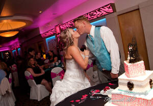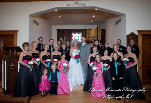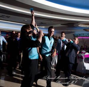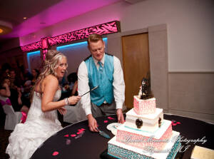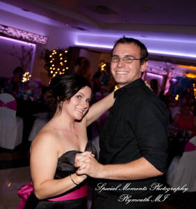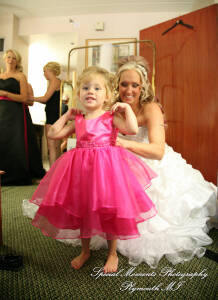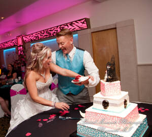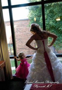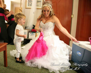 What a fun couple Taryn and Kevin are! We photographed for them at their Little Wedding Chapel Heritage Park Taylor MI & Arnaldo’s Banquet Center Riverview wedding reception.  The hot pink & bright turquoise tell you right off the bat (baseball pun intended) there is a lot of positive energy in this wedding party! Even the  adorable flower girl had an undeniable twinkle and contagious  excitement about her. Â