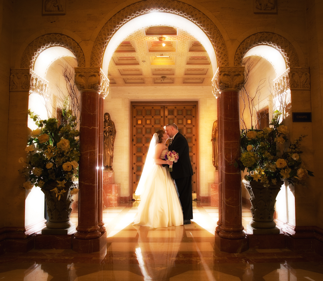Once they got to St. John’s they also were able to have a moment to get a couple of really pretty shots on the grounds.  The reception was held in the Galilee Ballroom, which was perfect for their wedding.  Congratulations and we wish you the best and continued joy.