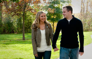 We are so pleased to present Sara and Mark’s beautiful engagement photos in Clarkston Michigan!  As I was shooting I was feeling this couple were perfect for each other.  They just fit!  Sara and Mark came to us from another couple whose wedding we recently photographed, which is always such a nice compliment.   In fact, most of our bookings come from referrals from previous clients!  Depot Park in Clarkston was the setting, and it was gorgeous with the fall colors, and all of the little spots they found and we had lots of fun with them.  The wedding is next July and we are looking forward to it!  Enjoy your engagement Sara and Mark and see you next Summer!