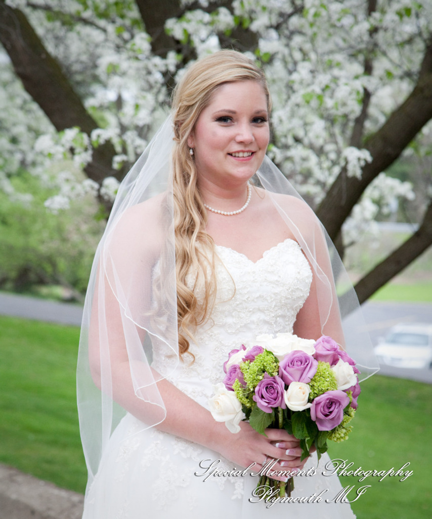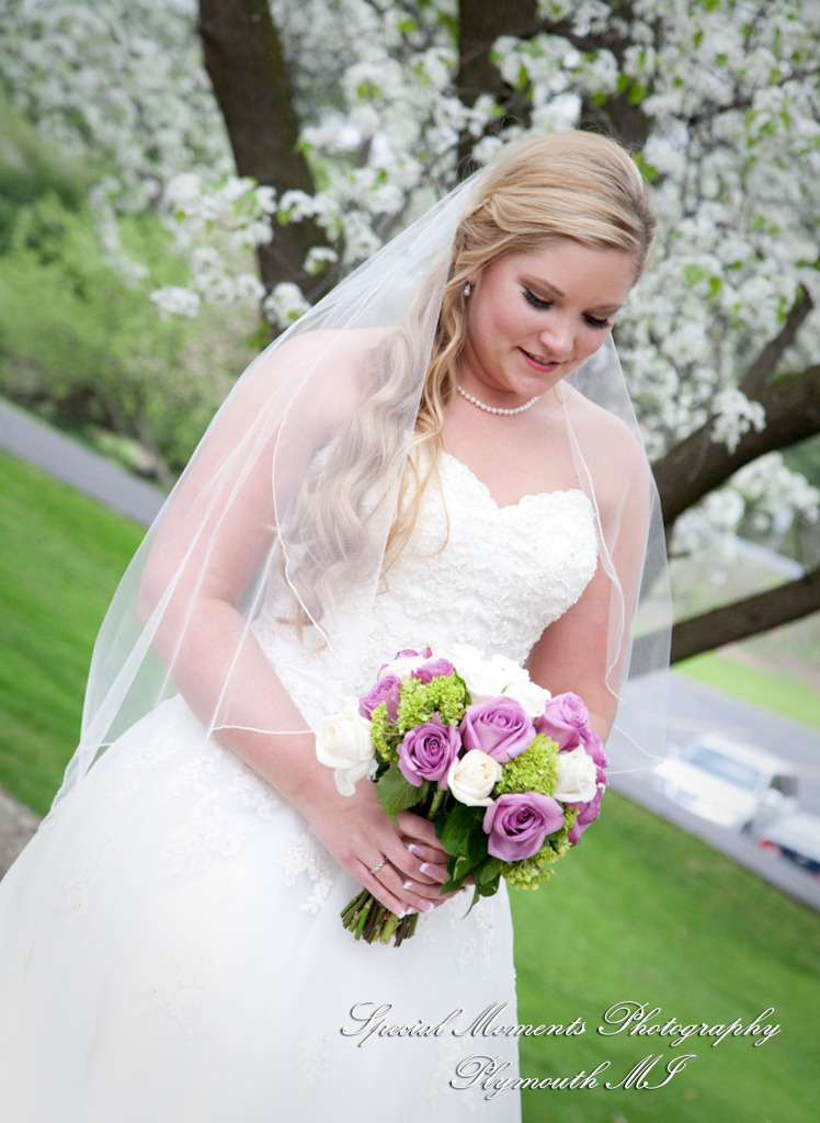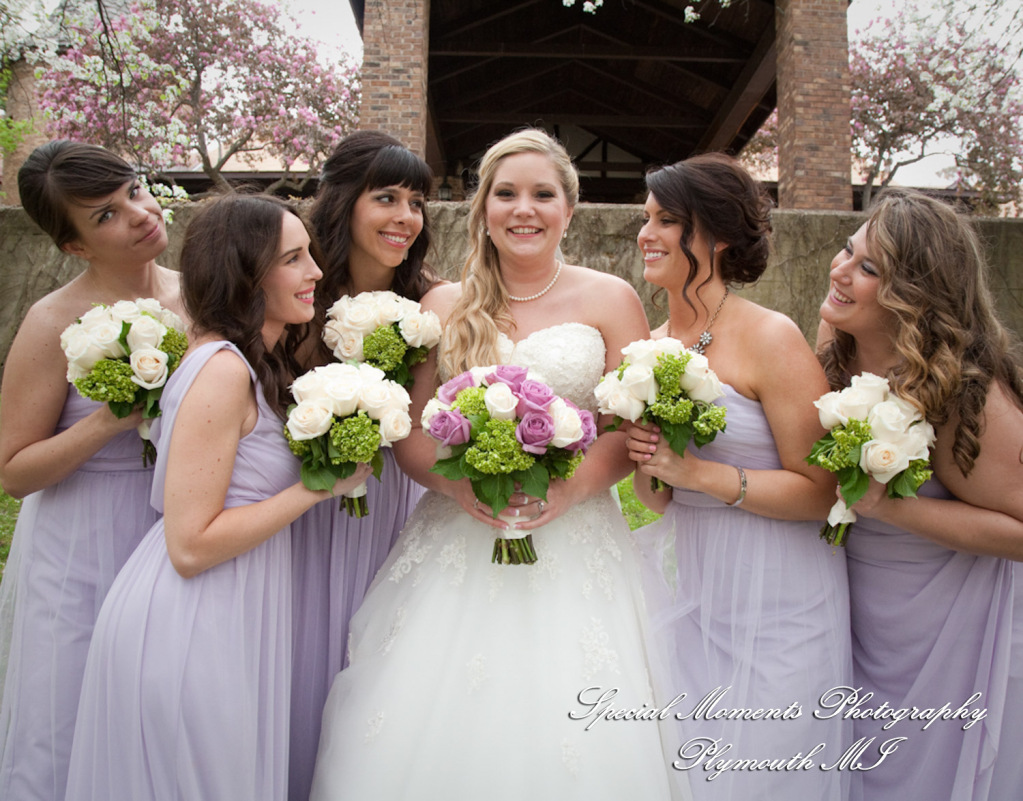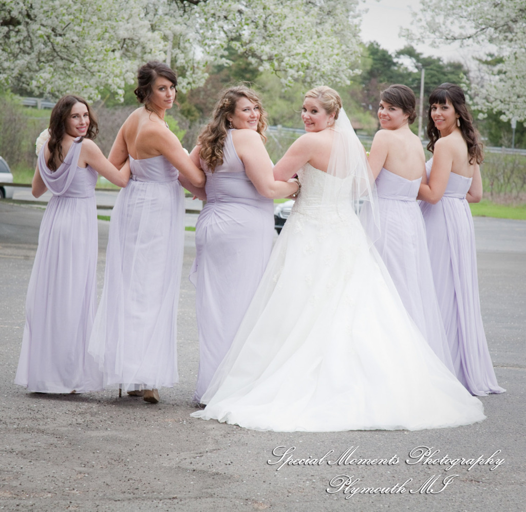 Lisa did a great job photographing Allison & Austin’s wedding at St. Joseph in Lake Orion. The flowers were in bloom & they took some beautiful photos at Indianwood Golf Club. What a fun couple and bridal party. The pale lavender of the bridesmaid dresses and bouquets look so fresh against the greens of the golf club. We love the photos of them in amongst the gorgeous spring blossoms!