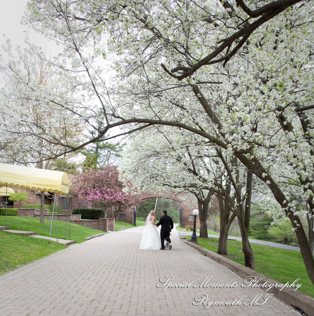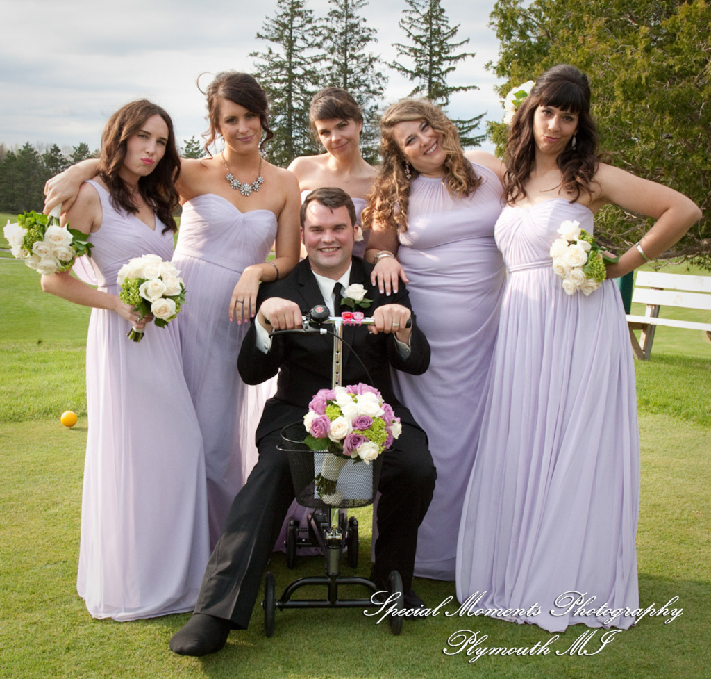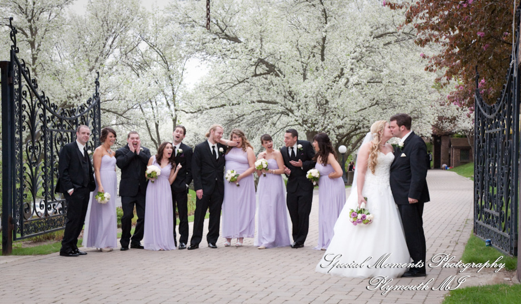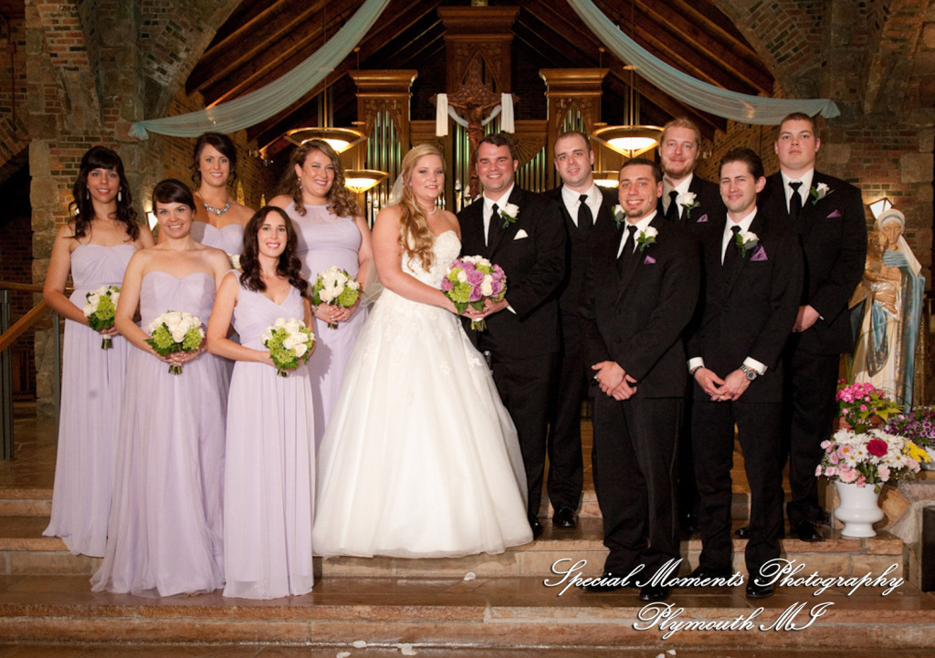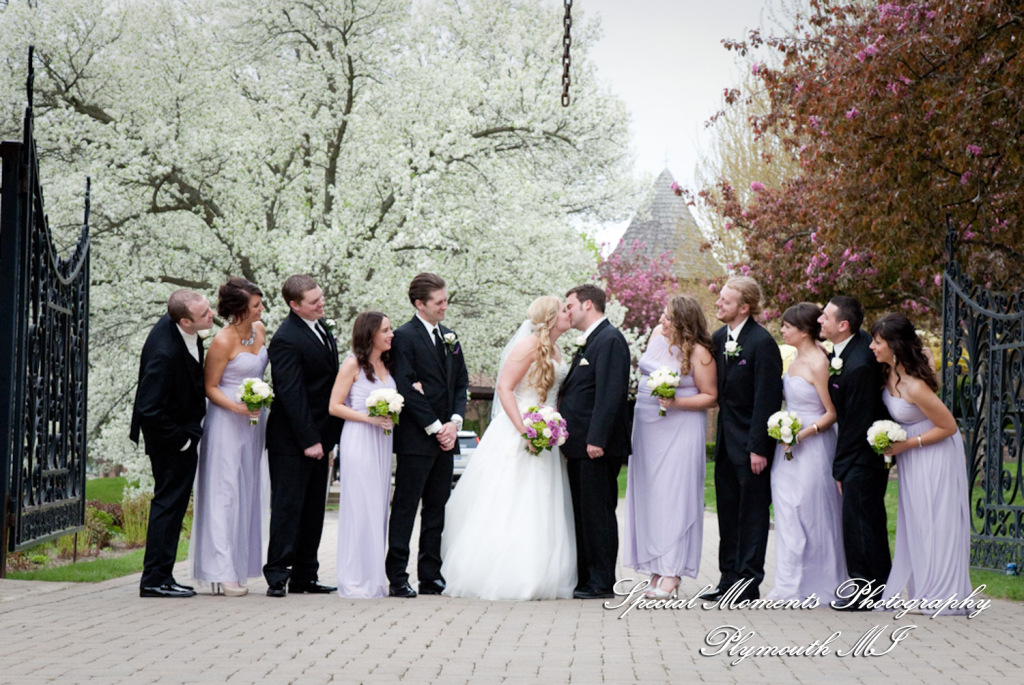 Lisa did a great job photographing Allison & Austin’s wedding at St. Joseph in Lake Orion. The flowers were in bloom & they took some beautiful photos at Indianwood Golf Club. What a fun couple and bridal party. The pale lavender of the bridesmaid dresses and bouquets look so fresh against the greens of the golf club. We love the photos of them in amongst the gorgeous spring blossoms!