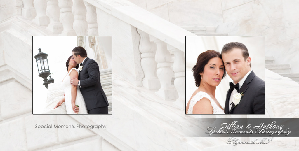 Coffee Table Design – Anthony & Jillian at St. Anne Chapel Grosse Ile MI wedding album photograph