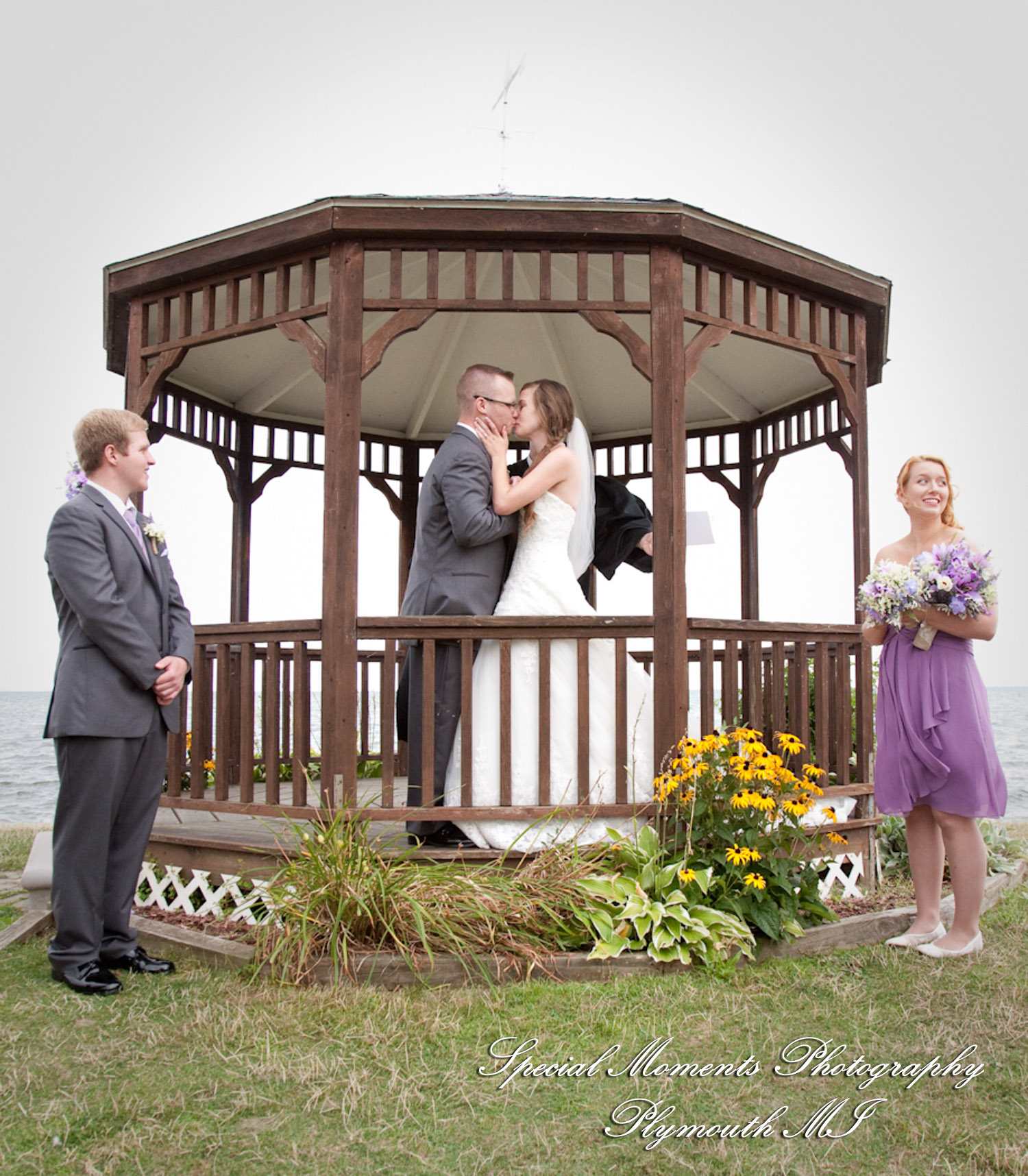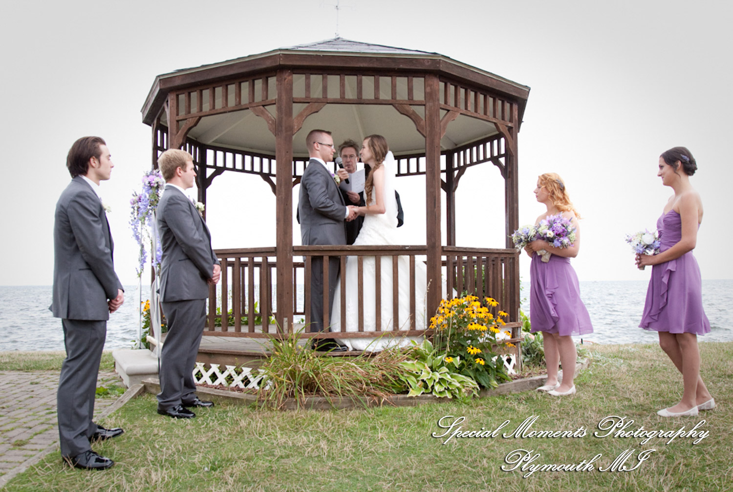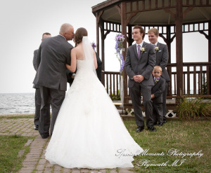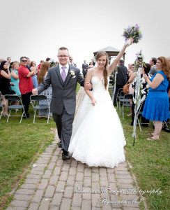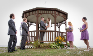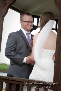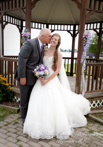 It was a gorgeous day for Danielle and Kenneth! Danielle is such a pretty bride and we love the beautiful colors she chose for her flowers and bridesmaid dresses – the lilac shade looks so good against the greens and blues of their waterfront, gazebo wedding. After their ceremony we took some fun photos of our couple with their bridal party and family, and then it was inside for a wonderful reception.  We wish them all the best for a great life together!