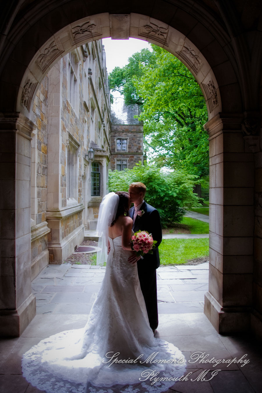 Jennifer & John at Law Quad U of M Ann Arbor MI wedding photograph