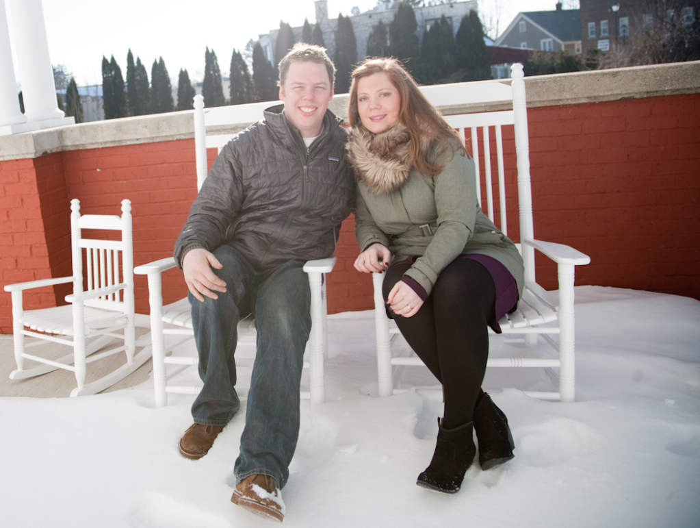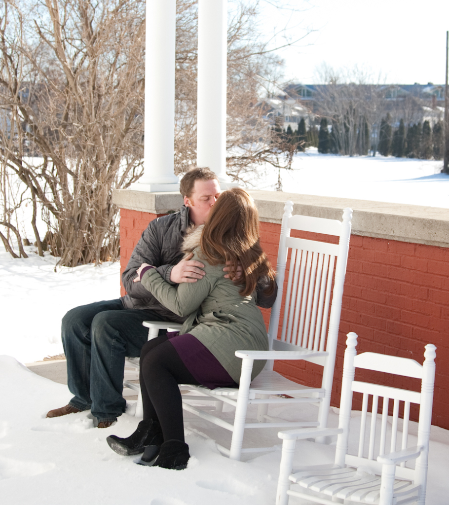 We can’t wait for their wedding coming up at the Detroit Athletic Club soon! All the best to you guys and see you again for the wedding! This was a fun downtown Plymouth engagement photo session. It was a winter day with a light snowfall in the air. We love this space to photograph in. When you think about great downtown areas on the west side, Plymouth is certainly one that stands above average.
