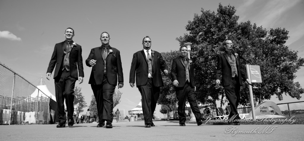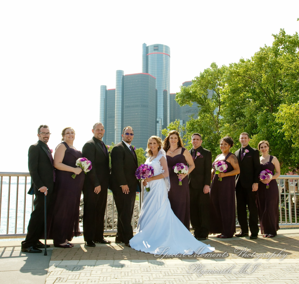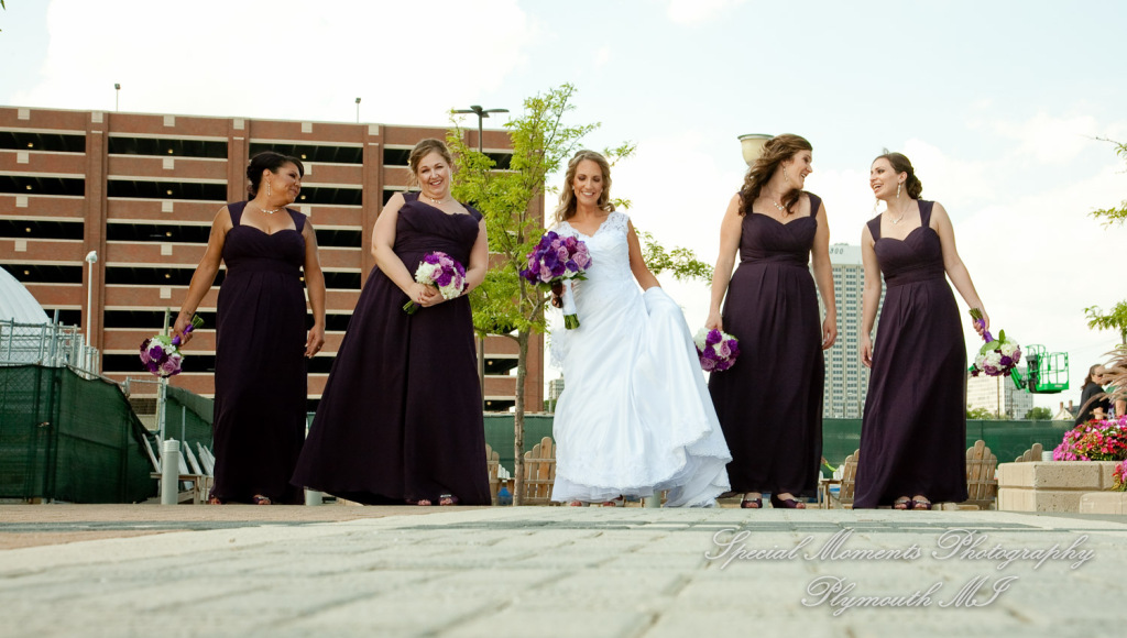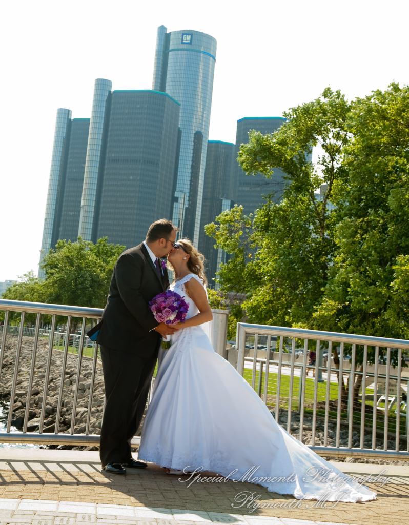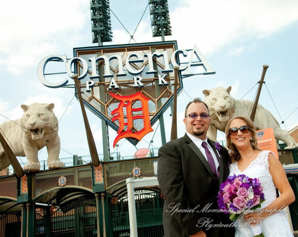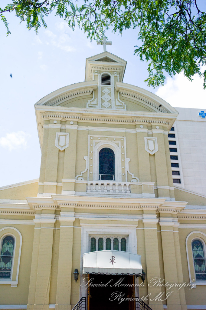 We met at Holy Family Catholic church for some photos and getting ready.  The service was so beautiful. This is one of my favorite churches in the city.  After taking a few family photos we took off out into the city.  We got down to the river and then to Comerica Park.  We also made a stop at their childhood church of St. Agatha Catholic Church Redford.  They had both been members at St. Agatha Church in Redford so this was important to make a stop over for some photos. I was fun to see them reminisced a bit about fun times as children there.  We had a great time shooting the wedding and going around the city to get some great looks at the city.