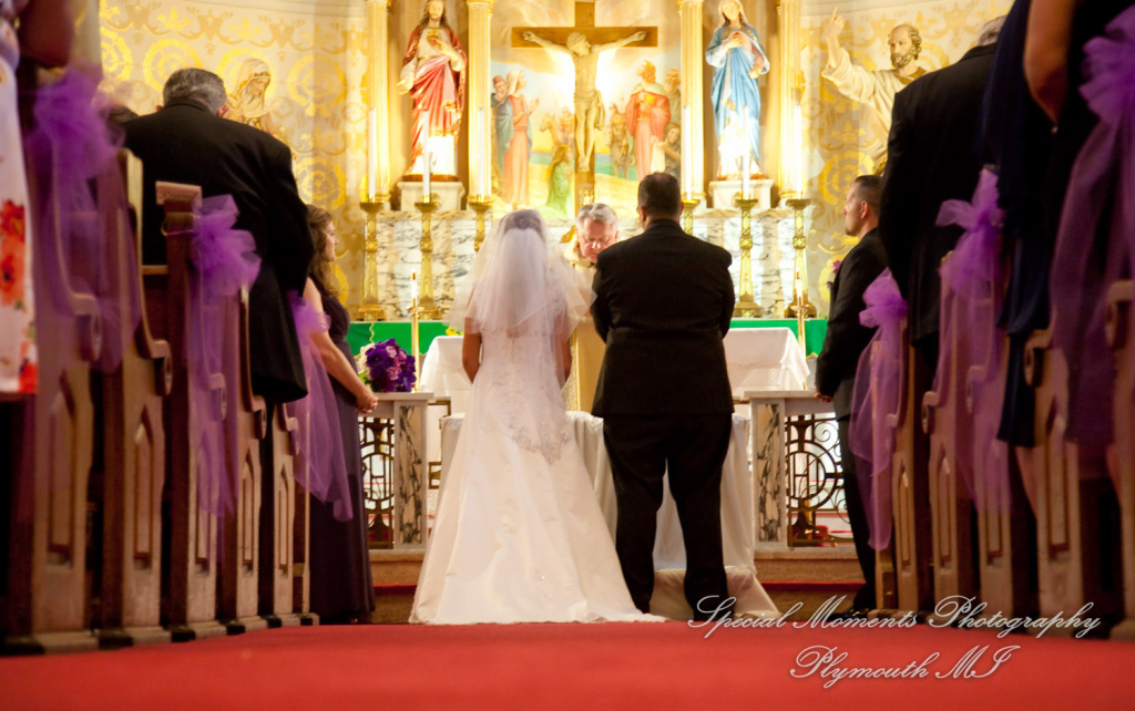 Lisa & Michael’s Holy Family Catholic Wedding in Detroit MI then off to the Italian American Club Livonia MI for the wedding Reception. It was a fun phone call to take from a Lisa when she told us she had attended a wedding of some very good friends, Angela & Dino a couple of years ago and wanted us to photograph her wedding.  Lisa was great to work with on the planning of her wedding, she was organized and put a lot of thought and planning into her wedding at the Italian American Club in Livonia.