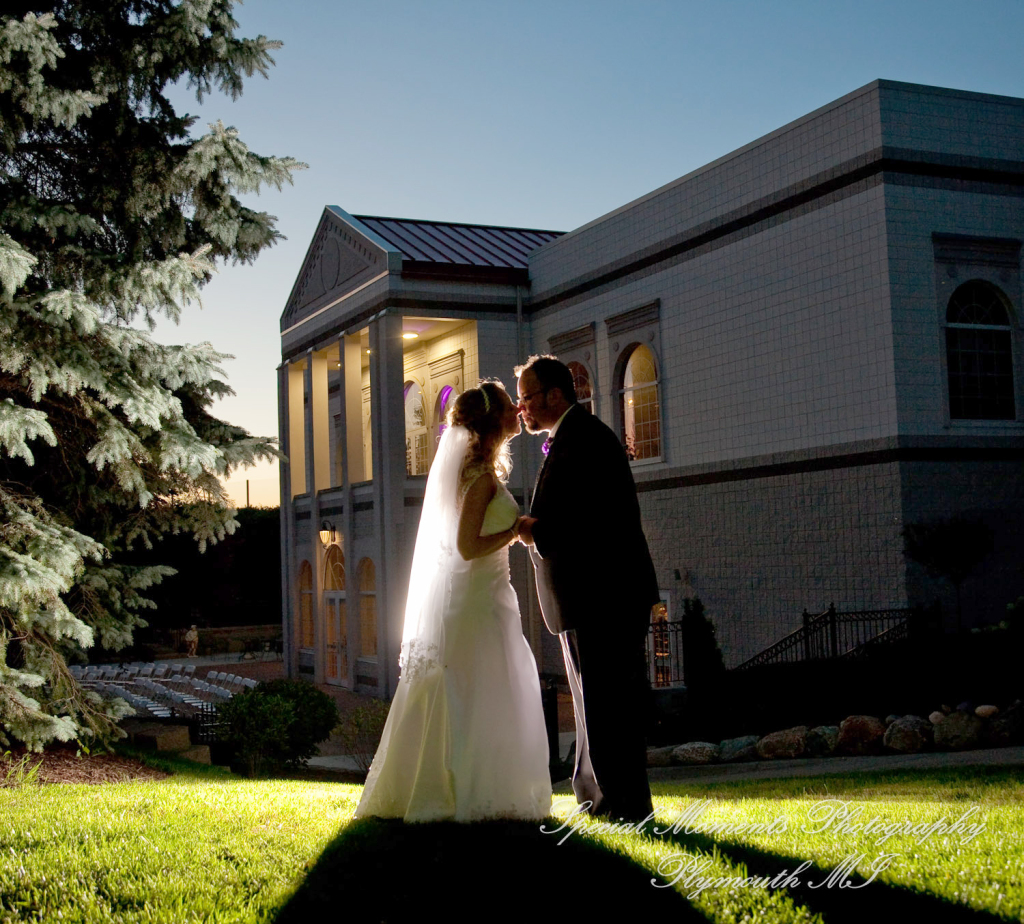 The Italian American Club in Livonia was set up so well when we arrived. This a beautiful place for a wedding reception.  The introductions were made, toasts followed and the party began.  They danced and played into the night. Later we took a few night shots outside in the moonlight.