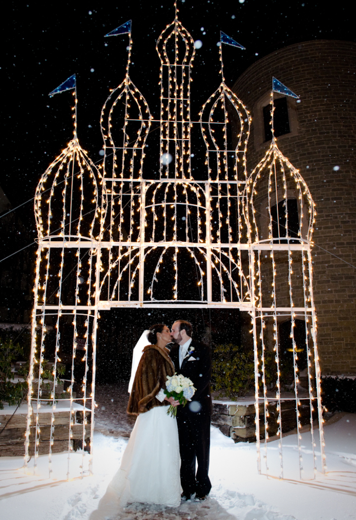 We would like to present Nicole & Sean’s beautiful winter wedding at Kings Court Castle in Lake Orion Michigan.  Freshly fallen snow can make for such a dramatic backdrop in winter weddings and the weather cooperated for Nicole and Sean’s special day!  Kings Court Castle is a fabulous venue for outdoor photos and the castle looks beautiful against a winter white background, especially at night.  We hope you enjoy the photos and we wish our couple the very best!