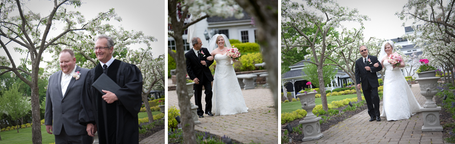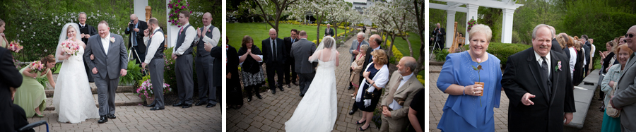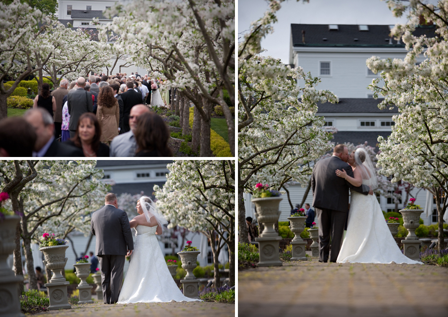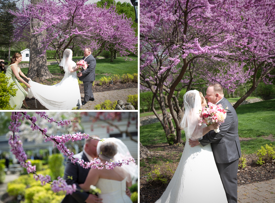 The first look was pretty emotional, Ryan and I picked different angles to work from to cover it.  I love working with Ryan, he always is looking for that unusual angle and moment in time that makes for excellent photojournalism.  Later, during the wedding the flowers on the trees were in full bloom and looked great, I picked a low angle on the procession to show off the tunnel of flowers Nichole and her Dad walked down.