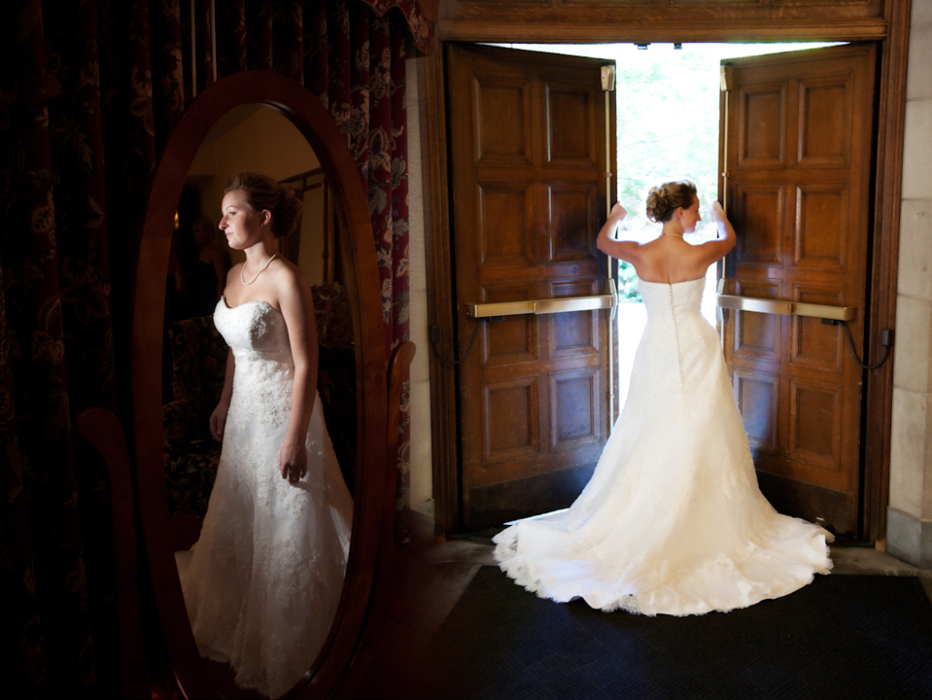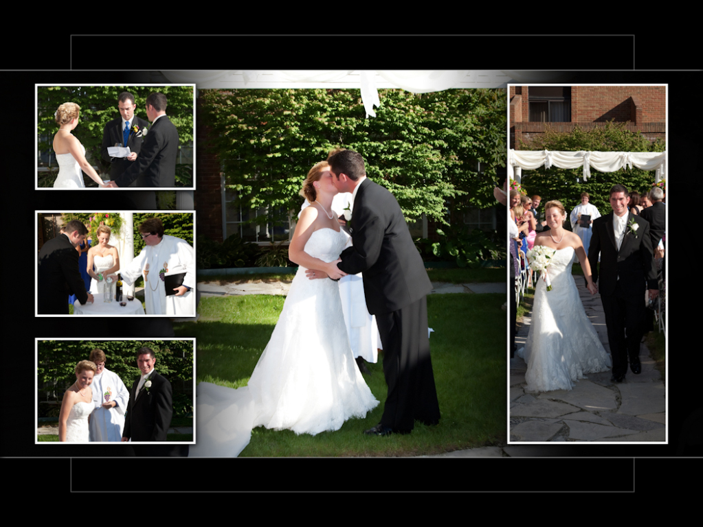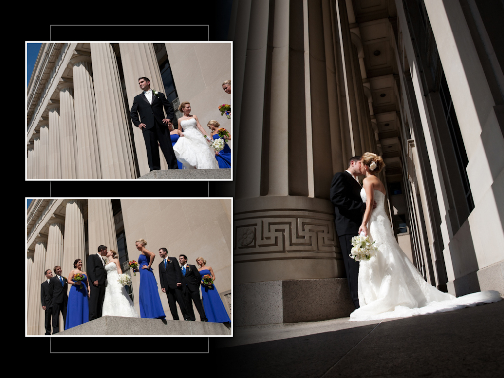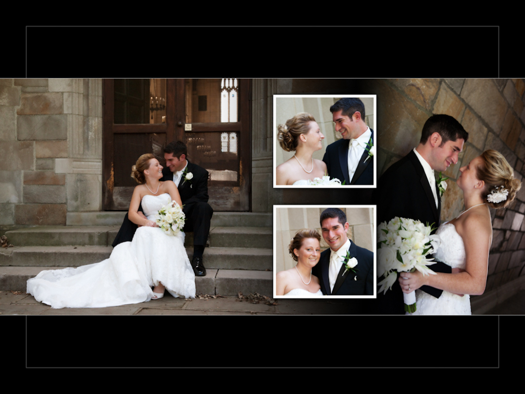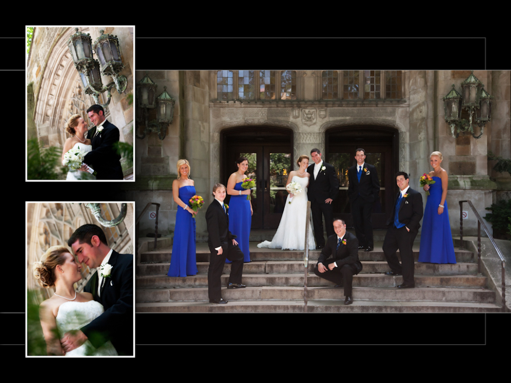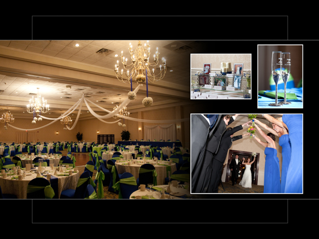I had a lot of fun at this wedding. Kristen & Josh had their “first look” in town before the wedding and I will never forget the look on his face when he saw Kristen for the first time! She looked stunning. I like the choices they picked for the album layout, it looks very nice. One of my favorites from the reception at Kensington court was this toast shot and the shots we got later when we went outside after dark for some night shots. Here it is and hope you enjoy!