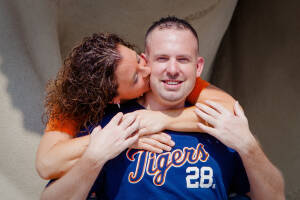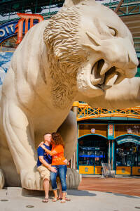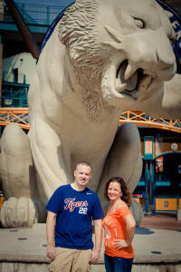 We shot a very cool engagement session for Ruth & Joe this past week. Their downtown Detroit engagement pictures are so fun.  We started out at Comerica Stadium for some fun baseball themed photos, and then after a wardrobe change, we ended up at Campus Martius for some very colorful photos on the green.  This is one of my favorite engagement shoots of the season!