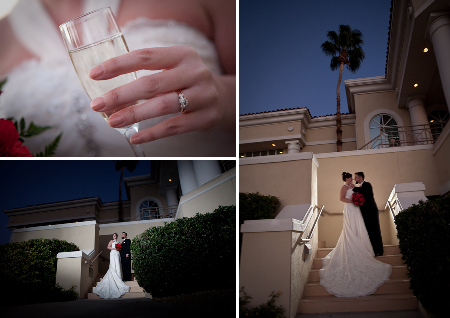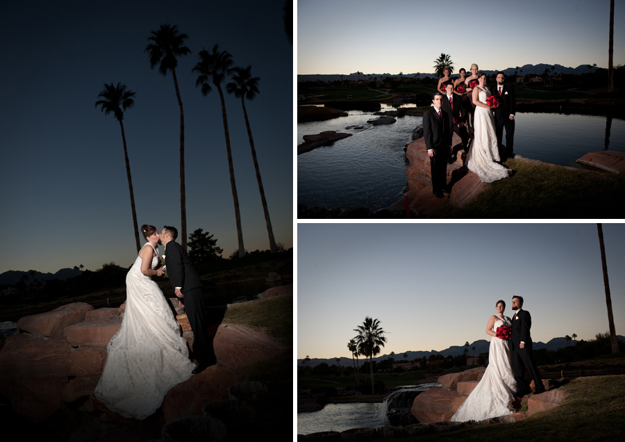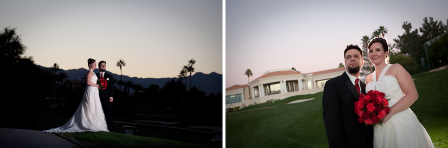 When we arrived at Canyon Gate Country Club in Las Vegas we walked out back for some breathtaking photos by the waterfall and golf course with the mountains off in the distance. The sun was going down and I love that time of day to shoot. Edward & Katie seemed to be having a great time with the whole idea of getting married to each other and the energy just radiated off them all night. After dinner they danced and partied and everyone had such fun.